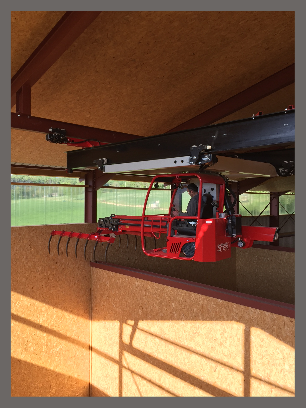 Il peut ensuite être distribué directement à l’auge grâce à la griffe à fourrage.